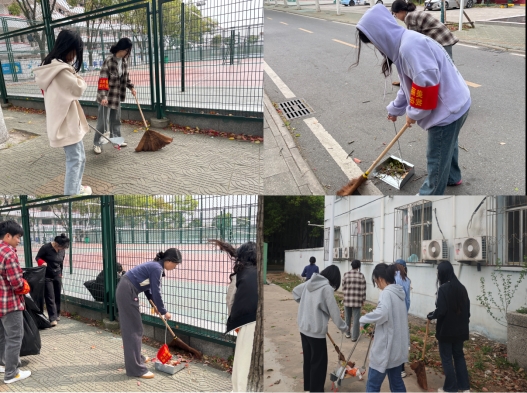 活动当天在负责人胡忠平的带领下,同学们到达了指定区域。对责任区域内包括万品汇、宿舍楼前等进行大扫除。虽然大风裹挟着落叶与杂物,给清扫工作带来巨大挑战,但同学们依旧分工明确、配合默契。