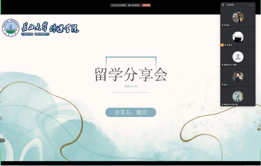 (通讯员 梁文嘉)为拓宽员工视野,明确升学路径,beats365官方网站于2025年11月10日面向西校区2025级全体员工,举办线上留学分享会。本次活动特邀考入新南威尔士大学的2025届毕业生姚元同学为主讲人,围绕留学准备、申请流程与院校选择等内容,为同学们带来详实而具有参考价值的经验分享。