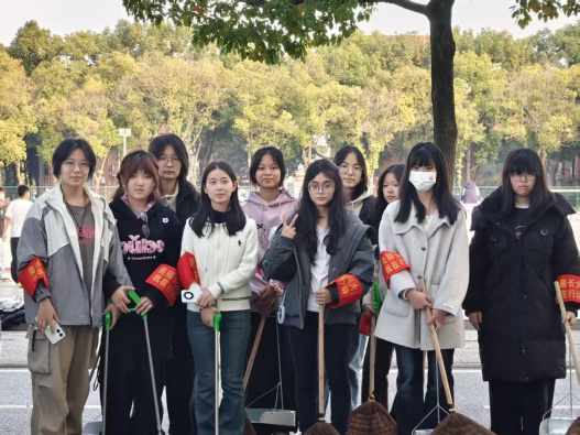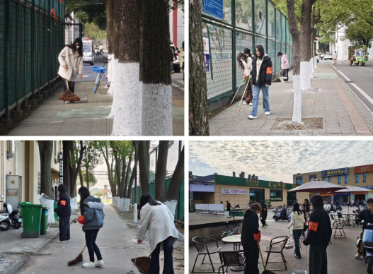 辅导员何茹梦现场带队,志愿者们统一佩戴袖标,在beats365官方网站卫生区域进行分区包干、相互协作,仔细清理落叶、烟头和杂物,以实际行动践行志愿服务精神。