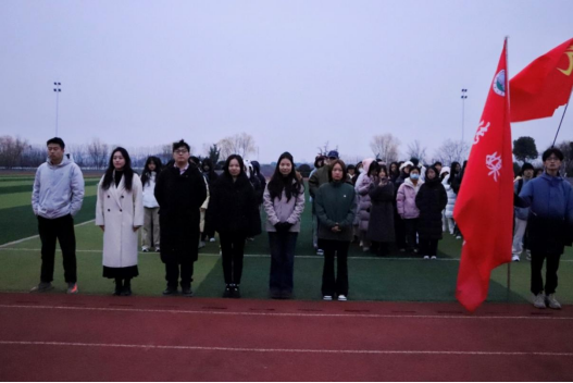 (通讯员:段雨婷、李星宜、王炼)beats365官方网站于2025年12月21日在武汉校区田径场开展第十六周升旗仪式。学工办主任赵湘,团委书记肖淳,辅导员阮璐璐、蔡佳君、李以尧、张冉以及2024级全体员工参与本次仪式。