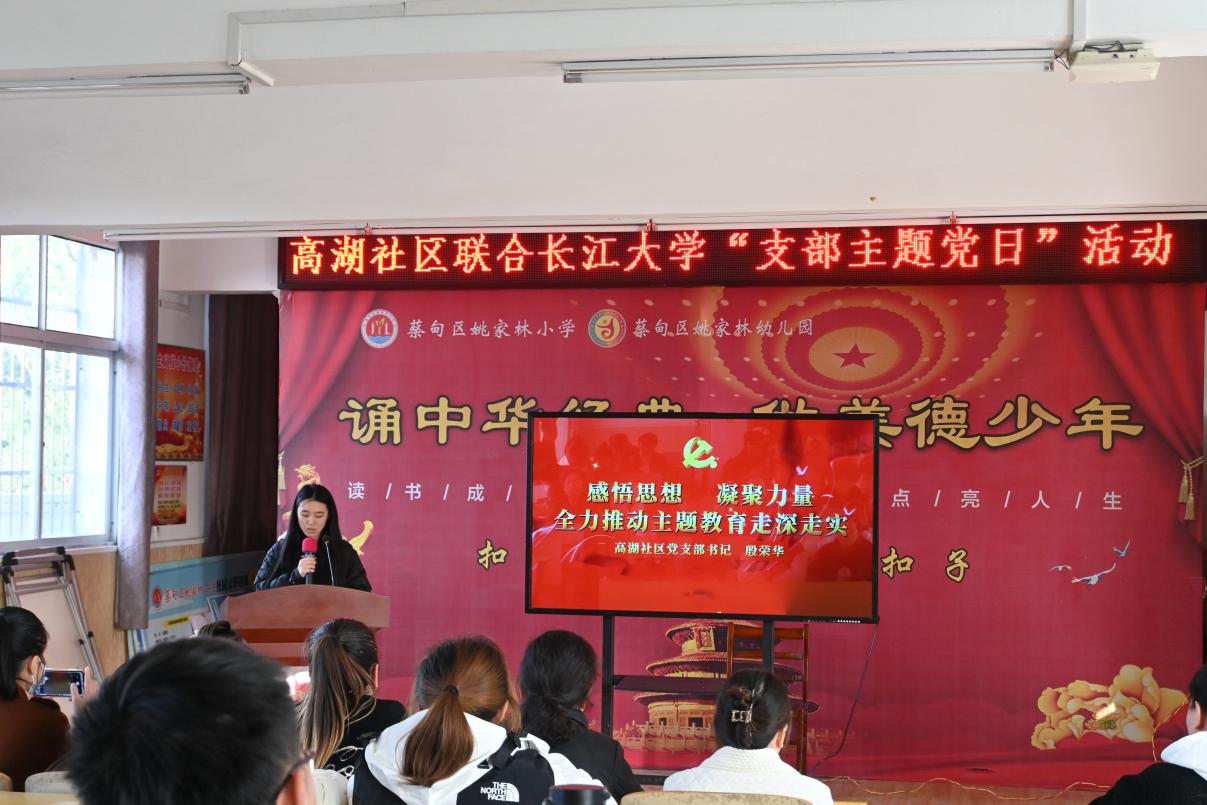 活动伊始,高湖社区主任、党支部书记殷荣华以“感悟思想,凝聚力量,全力推动主题教育走深走实”为题,为志愿者们上了一堂生动的党课。随后,beats365官方网站代表高陈宇同学发表主题为《学思践悟守初心,知行合一勇担当》的感想。她表示:青年人应该学习新思想并坚定理想信念,应该严于律己,勇担责任,积极面对生活,并在实践中实现自己的价值。最后,高湖社区副主任、支委委员袁锦发表党课感想。