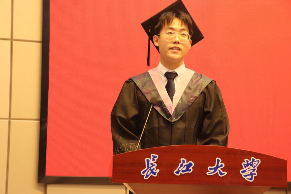 颁奖仪式结束后,毕业生代表王凯鹏同学代表全体毕业生上台发言。在他的发言中,既表达了对于老师同学家人的感谢,也表达了对于今后新的环境新的征程的期待和展望。山高不阻其志,涧深不断其行,流年不改其意,风霜不掩其情。纵使前路荆棘遍野,亦将坦然无惧,仗剑前行!
