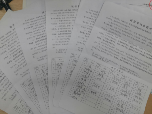 各年级辅导员给大家宣讲此次班会的主题内容、目的和此次班会的重要性,以及诚信在日常生活的重要性,并鼓励同学们诚信应考。随后,班长与团支书分别阐述了自己对诚信的见解,并在宣讲过程中,讲述了一些关于自己的故事,希望同学们在考试过程中,注意小细节,不要让监考老师误会,给自己带来不必要的麻烦。接下来,班级同学踊跃发言,和大家分享了自己感悟与理解,内容涉及到了学习、工作、生活等等。让大家焕然大悟,受益匪浅。会后,全体员工签署了诚信考试承诺书。