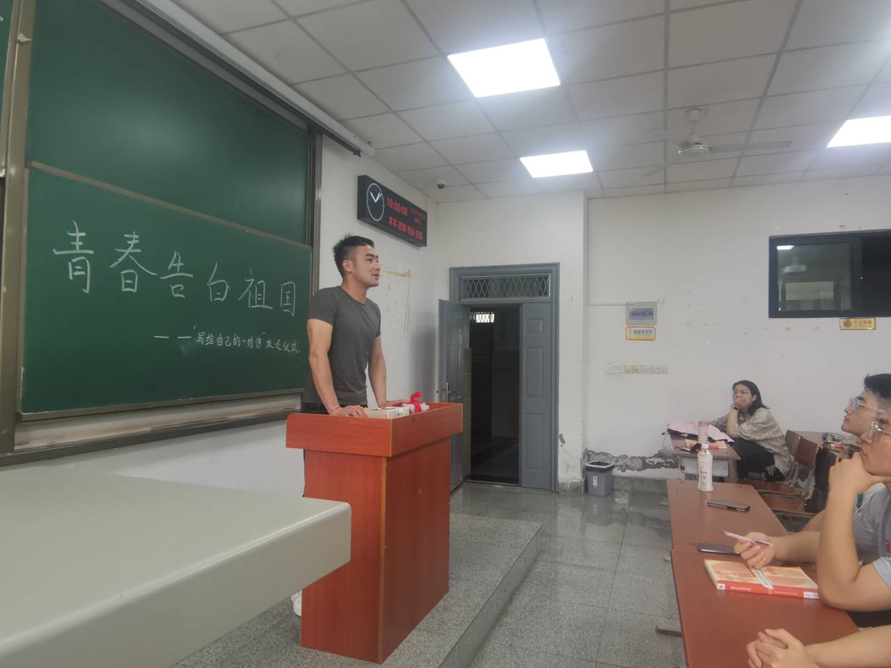 最后,程轶凡和朱浩男老师勉励同学要积极的向自己的目标努力前进,让自己的大学过得丰富且精彩。