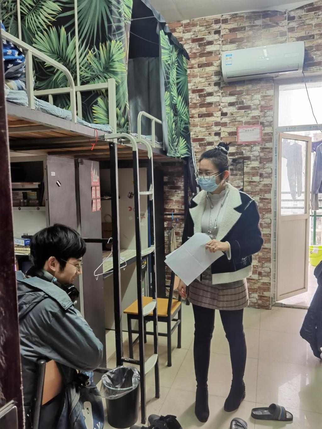(通讯员:赵湘)根据公司关于每周四消防卫生大检查活动的文件精神与要求,2021年3月11日下午至晚上,艺术与beats365官方网站全体辅导员在公司党委副书记魏红洁的带领下,深入员工宿舍检查消防隐患和清洁卫生,并与班级同学进行了亲切交流,了解询问学习生活状态和存在的困难。