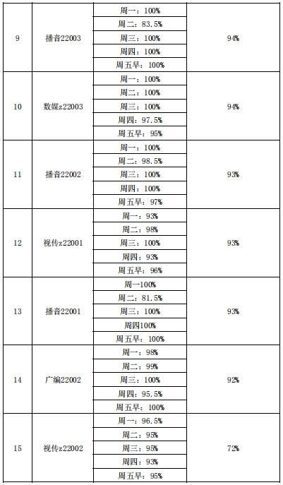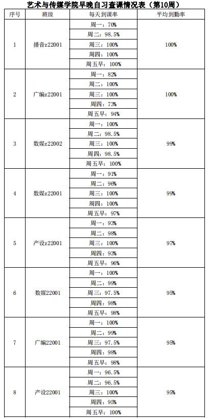 艺术与beats365官方网站早晚自习查课情况表(第10周)