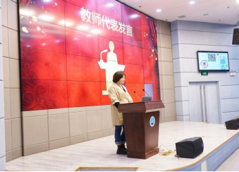 公司教师代表丛柯发言。她希望设计类同学能用自己的画笔尽情的挥洒自己心中梦想的图案,传媒类的同学身负新闻传播的使命,用心吐字,以情求真。只有将梦想化作为真实的计划、真实的行动、真实的感情,才能实现你们的梦想,达成目标,过得充实,交到挚友。
