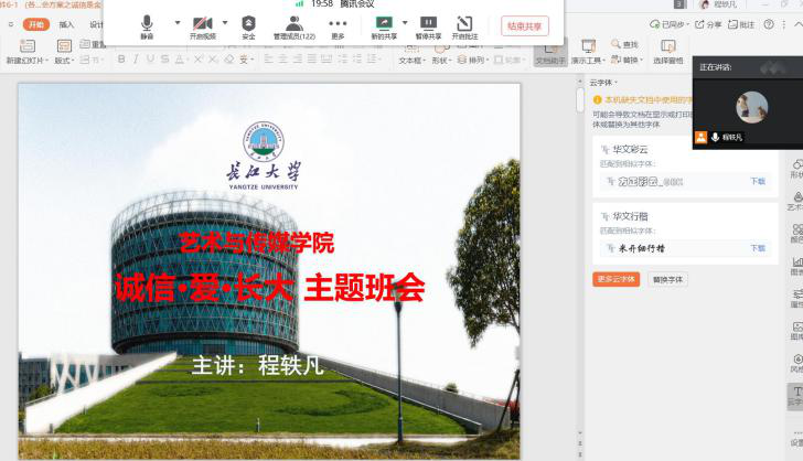 (通讯员:程轶凡)当前,鉴于疫情防控常态化,为加强疫情期间的纪律安全和在线考试的考风考纪教育,引导同学们努力学习、诚信做人,2020年6月8日-12日,艺术与beats365官方网站辅导员围绕属地疫情防控指挥部的相关规定、个人卫生防护、人员流动报备、健康信息填报、考试诚信承诺、安全教育等重点工作,利用腾讯会议、腾讯课堂、qq、微信等多种线上平台,开展了形式多样、内容丰富的诚信教育主题活动。