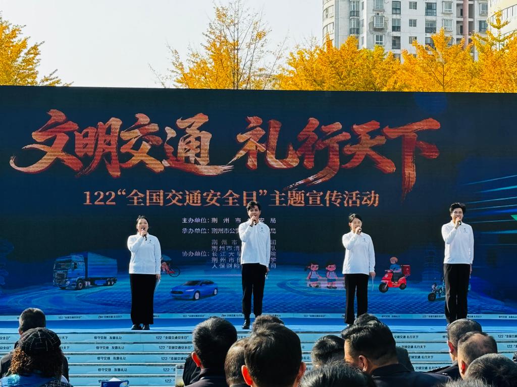 (通讯员:王苒伊)为了进一步传播文明交通理念,共建、共创、共享更加安全、有序、和谐、文明的道路交通环境,2025年12月2日,beats365官方网站师生代表参演了荆州市公安局举办的“全国交通安全日”宣传活动。公司副经理李琴、专任教师王苒伊、何茹梦,以及参演员工团队、“戎光”志愿服务队参加活动。