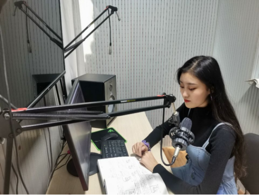 她在校期间始终坚持守住初心,守好"阵地",以文聚心,艺兴生活,以高度的文化自觉全情投入,在抗疫的特殊时期在中国播音主持网发表抗疫朗诵作品《当时我们选择了这座城市》。在这部朗诵作品中,她表现得可谓“清水出芙蓉,天然去雕饰”,没有使用过于张扬的表达技巧,却悄然精准地表现出了诗歌情绪的转折起伏,将中心主旨“理想”二字演绎的淋漓尽致,将她心中为理想致敬,为前方加油的情感传达给了每一位听众。