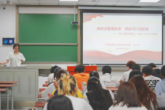 宣讲会伊始,金薇带领同学们了解党的二十届三中全会主题的由来与召开的重大意义。回顾党的历届三中全会重要时刻,她指出,全面深化改革是推动中国式现代化、实现中华民族伟大复兴的根本之路,而党的二十届三中全会是中国式现代化全面推进强国建设、民族复兴伟业的关键时期召开的重要会议,既是实践续篇,也是时代新篇。随后,张襄粤向同学们普及党的二十届三中全会所作部署与体现的创新,她详细解读了《中共中央关于进一步全面深化改革、推进中国式现代化的决定》的核心内涵,深入介绍部署所涉及的七个方面重点内容与反映的十个方面要求。同学们认真学习宣讲内容,受益匪浅。