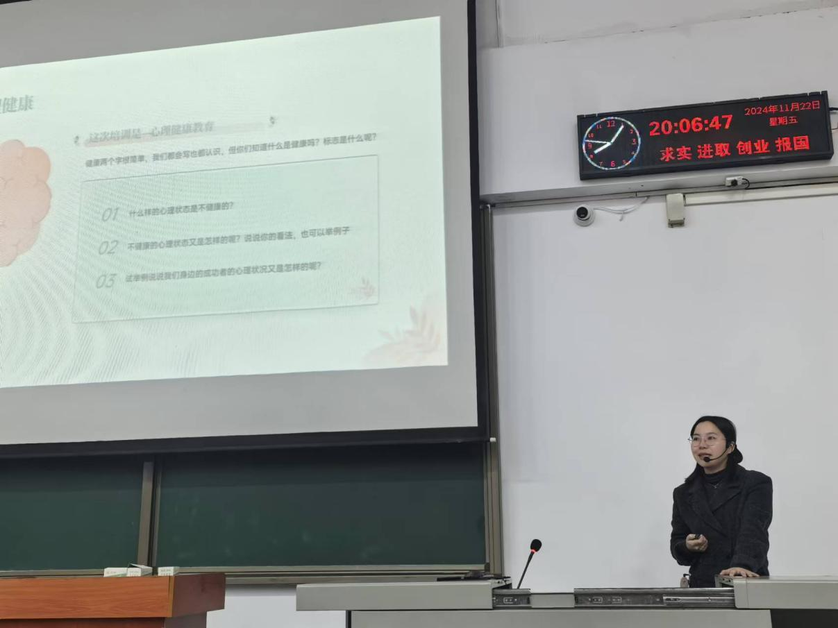 此次培训包含走进心理健康、识别心理问题、学习心理援助、熟悉心理体系四大板块。刘庸老师首先强调心理疏导重要性,帮助同学们认识心理健康,了解心理健康的标准,并根据心理状态的不同,识别问题的严重程度。随后,刘老师详细讲解了四种老员工常见心理障碍及症状,借情景案例与提问互动增强同学们心理知识认知。最后,刘老师阐述心理咨询概念及员工干部心理疏导方法,突出心理疏导与及时求助的重要性。