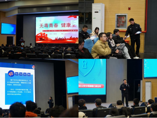 “戎光”志愿服务队队员王松峰同学主持宣讲会。首先黄宇琳警官详细讲解毒品的种类、危害及防范方法,通过真实案例和图片展示,让师生认识到毒品的严重危害,提醒大家增强辨别能力,拒绝陌生人的“馈赠”,培养良好习惯,慎重交友,远离易染毒场所。