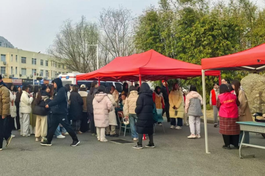 讲座结束后,协和江北医院专家团队在校门口开展多科室义诊,涵盖皮肤科、口腔科、康复科、内科、妇科、中医科等。中医把脉、皮肤问题咨询、妇科健康指导等摊位前人头攒动,员工们纷纷就个性化健康问题与专家面对面交流,获得专业建议。
