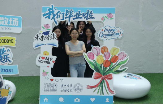 学位授予仪式当天,学院于一楼大厅精心开展了“时光邮局:定格毕业季”展板打卡活动,为即将踏上新征途的毕业生记录“大学最后一程”的仪式感,串联毕业情感与校园记忆,留下一份珍贵的青春影像档案。