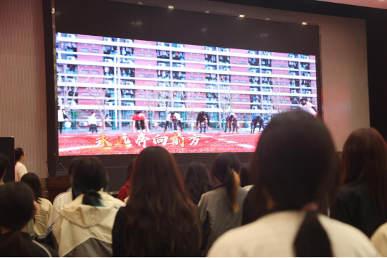 专业导航环节,播音与主持艺术专业专任教师柴攀,介绍了专业设置与培养要求、主干学科与学位课程、团队介绍、成长路径与学习建议、就业去向与深造情况、专业特色、核心课程与就业前景,并带领全体师生齐声朗读: “道虽远,行则将至;事虽难,做则必成。愿同学们在经风雨、见世面中长才干、壮筋骨,练就担当作为的硬脊梁、铁肩膀、真本事。”铿锵有力的诵读声将现场气氛推向高潮。