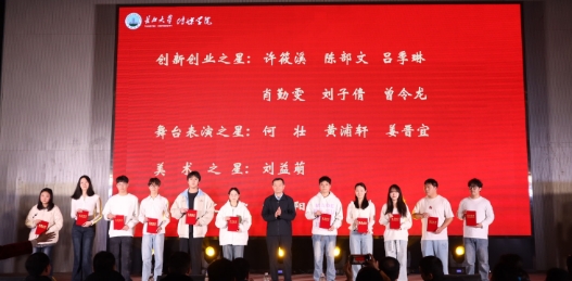 颁奖环节中,公司围绕“正三风,树三观,成三才”的育人理念,对在创新创业、舞台表演、美术创作、新媒体、志愿服务、优秀学干、优秀班级、优秀寝室建设等方面表现突出的集体或个人予以表彰。校领导和相关职能部门负责人依次为“三才学子”获奖个人和集体代表颁奖,激励广老员工奋发有为。
