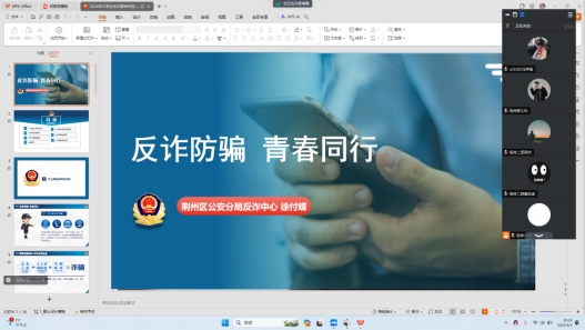 在随后展开的防诈反骗主题班会中,辅导员对常见的诈骗手段与类别进行详细的介绍,并通过对相关案例的分析,使同学们更直观地了解到电信诈骗的危害性。同时,也普及了跑分等帮信罪的概念,警示同学们遵纪守法,远离电信诈骗,做到“6个一律”。