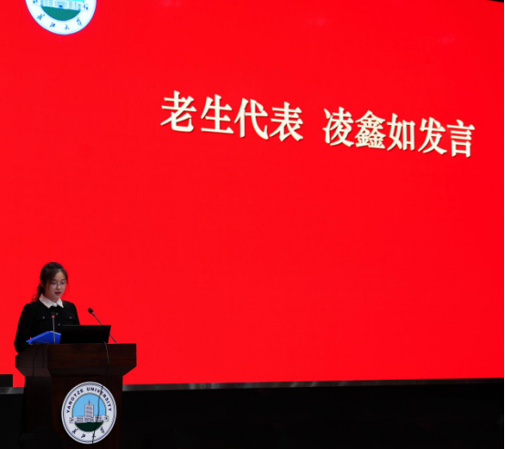 老生代表凌鑫如在发言中表示:专业的学习需要追求纵深发展,老员工应避免成为枵然无用之人,多参加专业相关竞赛与实践,运用最擅长的事物助力国家发展。另外凌鑫如同学还提及,新生也要学会在生活中寻找“小确幸”,让老员工活多一些美好。