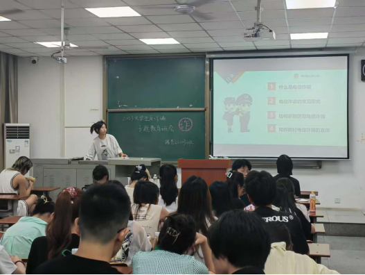播音22203班负责人刘玙佳向同学们详细介绍了一件刷单诈骗案例:某高校员工李某在收到陌生短信后添加消息中的微信,对方通过后李某加入对方介绍的兼职刷单群,对方先以小额返利为诱饵,诱骗李某投入大量资金后,将李某拉黑。刘玙佳以这件案例提醒同学们千万不要被蝇头小利迷惑,千万不要交纳任何保证金和押金,在日常生活中要擦亮自己的双眼。