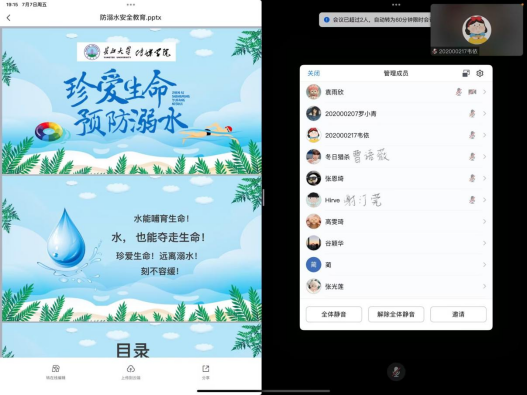 在线上班会,同学们不仅学习了关于防溺水的安全常识,还通过图片、视频等渠道深入学习了溺水自救与救人的知识,做到防患于未然,使同学们深深受益。
