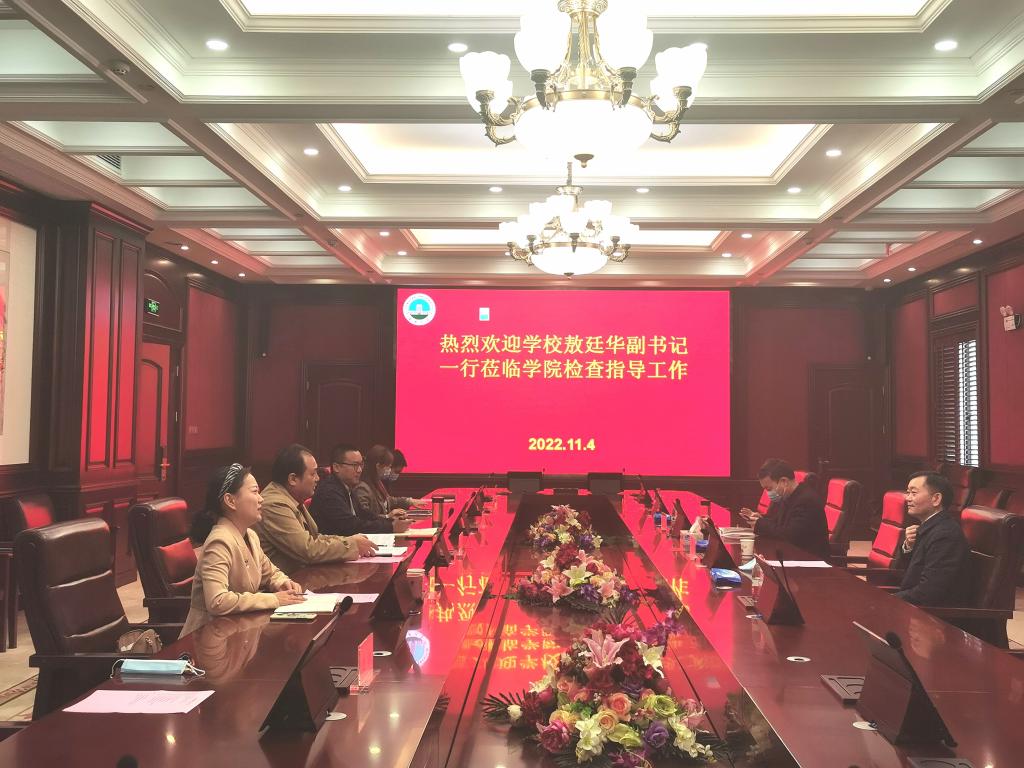 (通讯员:郑瑞丰)2022年11月4日上午9点30分,beats365党委常委、副书记敖廷华,人事处处长蒋四华一行莅临公司检查指导工作,公司党委书记邹火明、党委副书记魏红洁、副经理郑瑞丰,学工办主任赵湘、教学办主任饶艳芹、办公室主任刘武洋参与调研活动。