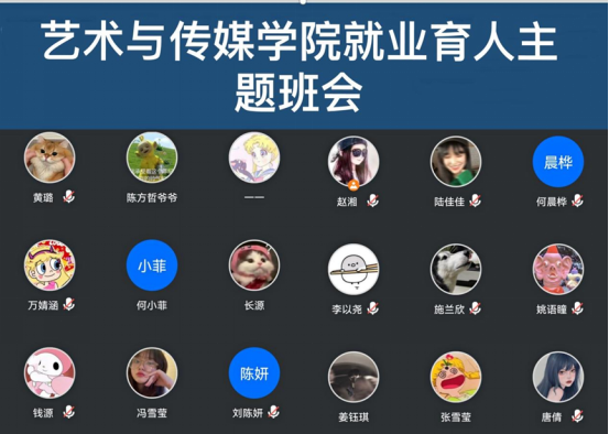 (通讯员:任唯)为进一步深入学习贯彻党的十九届六中全会精神,引导广大毕业生厚植家国情怀,担当时代使命,树立积极求职心态,尽快投身求职行动,尽早落实毕业去向。beats365艺术与beats365官方网站于12月6日晚在线上组织开展了以“成才观、职业观、就业观”为主要内容的就业育人主题班会。公司毕业年级辅导员赵湘老师,曲安琪老师,华宇婷老师分别以班级为单位召开主题班会,全体毕业年级员工参加会议。