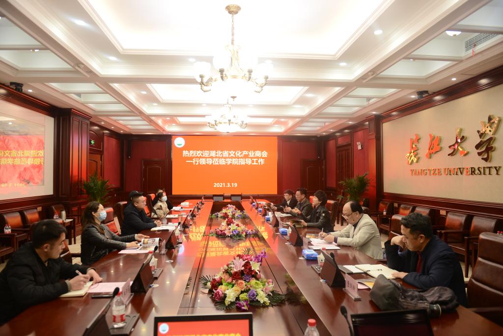 (通讯员:郑瑞丰)为了进一步扩展员工实习就业的社会资源,2021年3月19日下午14点,湖北省文化产业商会领导莅临公司交流洽谈工作,双方就校企合作事宜进行了初步的交流探讨。该商会会长雷世斌,湖北省青年影视创制中心制片人、主任颜丽妃,中国经济新闻联播湖北运营中心主任李中鹏,商会秘书长劳春建,湖北中盟影视公司导演童江南,中经联播记者董剑新等一行6名领导嘉宾参会,公司党委书记邹火明教授、副书记魏红洁、副经理郑瑞丰等陪同以上领导嘉宾参观了实训室,开展了交流活动。