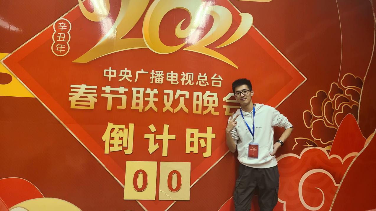 他表示,大三时因为和同班、同组的同学合作编排期末晚会而产生了浓厚兴趣。同时,这次能参加央视春晚,离不开集团提供的学习氛围和环境支持,也感谢班级实践小组同学在专业知识和生活上的勉励。