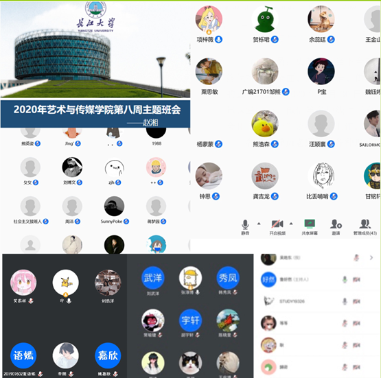 从开学第一周开始,艺传公司全体辅导员们便一直坚持在齐心战“疫”背景下开展线上“云”班会,效果良好,反响很大。后续的线上“云”活动还包括通过老师指导、学长学姐线上交流的学习、就业、实习等经验分享会、依托qq群的日常英语学习打卡活动等,引导同学们利用这个“悠长”假期“充好电”,期待努力向上的你我早日相聚在花盛树茂的知音湖畔!