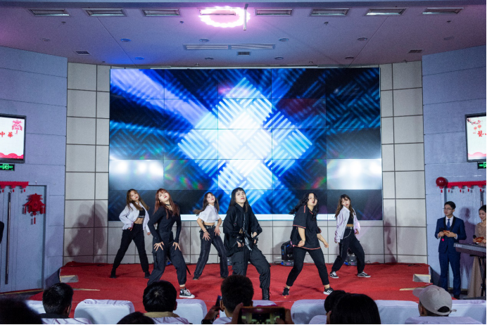 各种形式的演出异彩纷呈。在《有一种悲伤》节目组的双人舞中,透过歌曲和舞姿,将每个人心中的遗憾和悲伤留在了此刻,留在了当下,留在了2019。十点半乐队的表演又将每一个人的激情激发,冲破遗憾,冲破悲伤,冲向2020。配音秀《神奇一甲在哪里》完美展现出艺传公司的艺术特色,由配音社代表人员演出,给观众带来一场听觉盛宴。最后,也是最神秘的节目——《我和我的祖国》和《爱因为在心中》两首师生大合唱,由公司13位青年教师,带领一批员工,献唱祖国的七十寿诞,献唱我们共同的母亲。