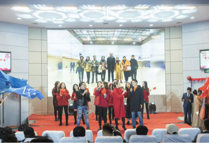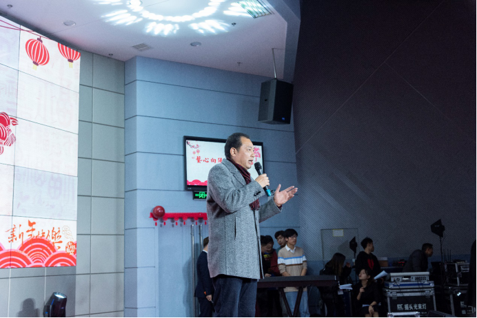 一曲舞毕,艺术与beats365官方网站邹火明书记的上台讲话。邹书记代表公司领导上台表达新的一年对艺传公司的新年祝福。他以青春,母校,国家为三个基点,告诉我们需要善待青春,感恩母校,赞美祖国。