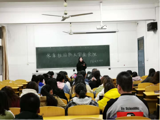 2019年11月17日晚七点,艺术与beats365官方网站2019级各班分别在2教T教室、108教室、206教室召开了以冬季防火安全教育为主题的班会活动,全院274名员工参加,会议在辅导员张克宇和程轶凡的组织下进行,各班班长主持召开。首先各班班长向同学们介绍了火灾的危害、火灾的引发原因、火灾报警电话、消防标志和详细的火灾逃生方法。然后提醒同学们关于日常生活中的起火原因,特别强调寝室的用电安全,严禁使用违规电器,并向同学们阐明了使用违规电器所引起的安全隐患和严重后果。两位辅导员着重强调:冬季天气变冷,严禁在宿舍使用电暖宝、电热毯、电火炉等违章电器,告诫同学们要遵守员工宿舍管理规定,提高个人安全防范意识。最后,向同学们介绍了预防火灾的方法,并给大家做了小知识问答,牢记火灾知识。
