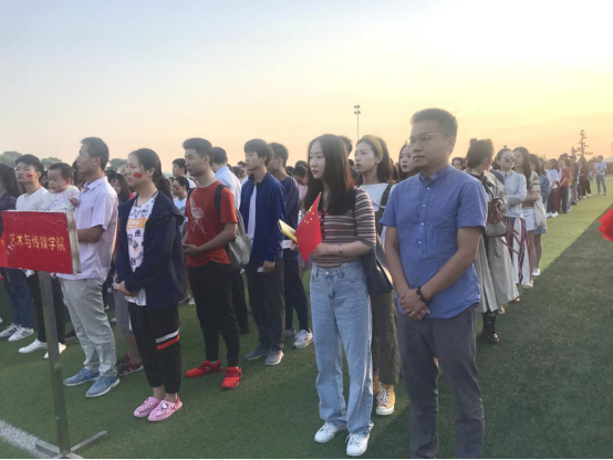 为了庆祝新中国成立七十周年,艺术与beats365官方网站师生积极参加喜迎国庆系列活动,10月1日早上7点,公司全体留校员工和老师齐聚武汉校区田径场,部分2019级新生和新生辅导员齐聚西校区田径场,共同参加“不忘初心、牢记使命”主题教育之“共庆新中国70华诞”活动。