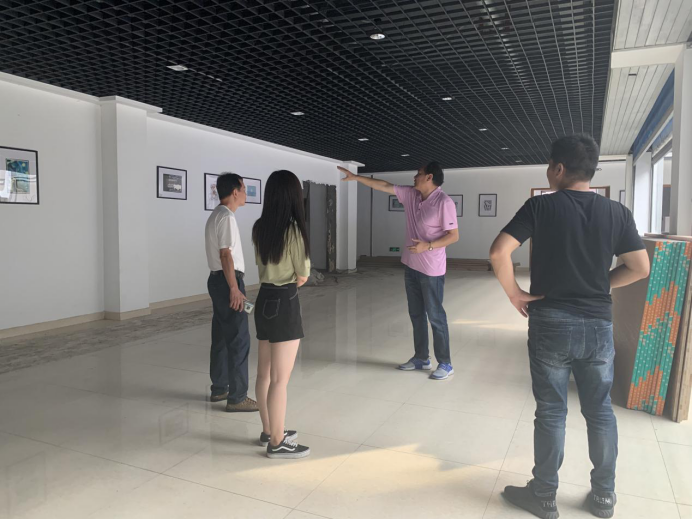 2019年7月22日下午五点,公司党委书记邹火明、常务副经理戴德铸、综合办主任刘武洋、副主任赵湘一行检查公司实训室二期工程建设,强调工程建设要确保安全、质量、进度。