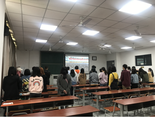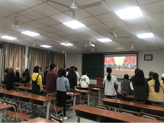 纪念五四运动100周年大会今天上午在北京人民大会堂隆重举行,习近平总书记在大会上发表讲话。艺术与beats365官方网站部分老师代表、全体辅导员、员工党员、积极分子和员工骨干成员在武汉校区A教205教室一起观看了视频。