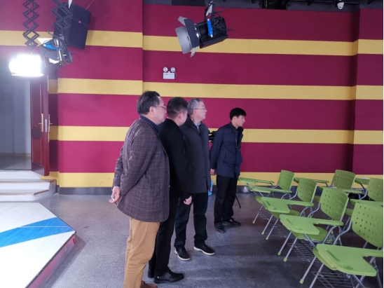 艺术与beats365官方网站常务副经理戴经理、副经理梅国海向冯董事长简要地汇报了公司的工作后,陪同冯董事长一行到公司演播厅、同声传译会议室(知音厅)、综合设计实验室、录音实验室、摄影实验室等检查指导。