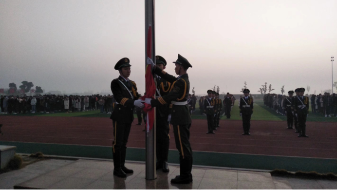 寒冬腊月,神清气朗。2018年12月17日上午7点,艺术与beats365官方网站在武汉校区田径场举行了庄严的升旗仪式,在嘹亮的国歌声中,全体师生肃立,随着五星红旗冉冉上升行注目礼,直至礼毕。