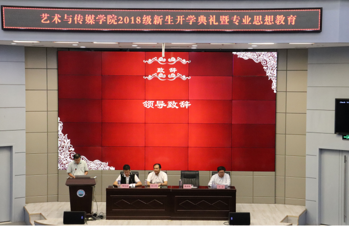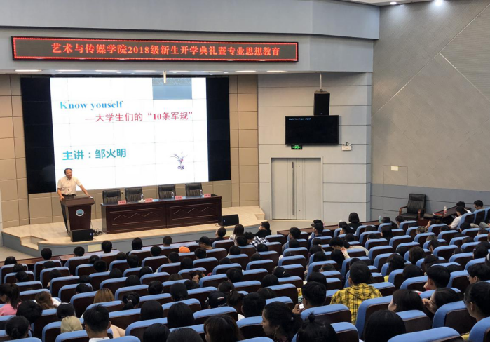 2018年9月29日晚19:00时,艺术与beats365官方网站学2018级本科生开学典礼在校区学术报告厅举行。艺术与公司党委书记邹火明教授、常务副经理戴德铸教授、教师代表陈旗教授,2018级辅导员饶艳芹、史梦玲、赵湘以及全体2018级本科生参加大会。