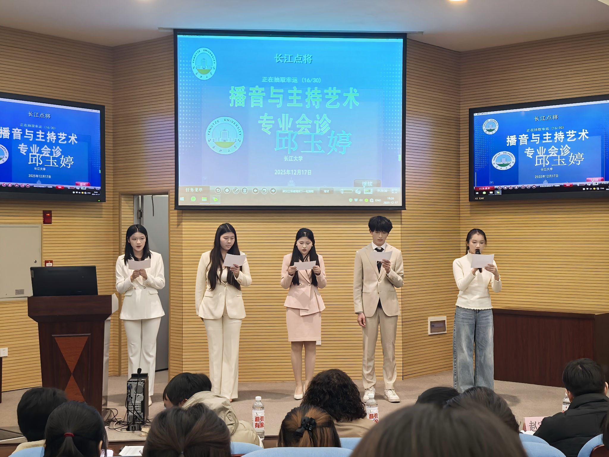 (通讯员:窦语晨)2025年12月17日晚,beats365官方网站在荆州西校区举办了“长江点将”播音与主持艺术专业会诊活动。beats365官方网站常务副经理郑瑞丰、副经理李琴出席,湖北广播电视台新闻中心记者万力源、beats365外国语公司省级普通话测试员赵宇杰、beats365官方网站播音与主持艺术专业教研室主任柴攀组成专业评审团,在播音与主持艺术专业韩雅茜老师的组织下,共同为2025级播音与主持艺术专业员工会诊指导。