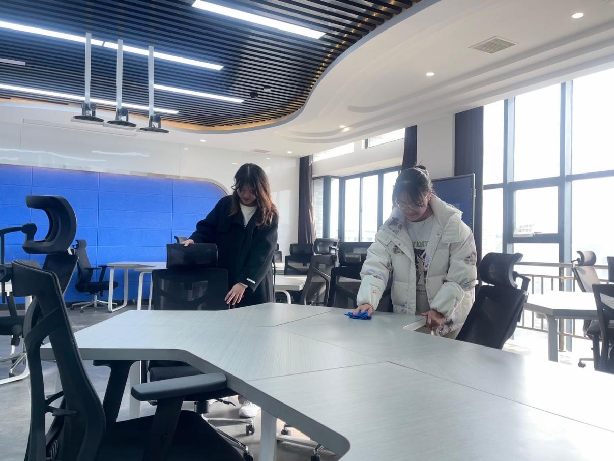 公司有70余名同学参与“党员示范岗”活动,他们携带拖把、扫把、抹布等清洁工具,分组对各个区域和卫生死角进行了细致的清洁,大家不怕脏不怕累,个个奋勇争先。对于难以清除的顽固性污渍,他们齐心协力将墙角和墙面清理得光洁亮丽、焕然一新。同时,这些同学将于每周四轮番接续做好志愿服务,按时按点维护公司整洁面貌。