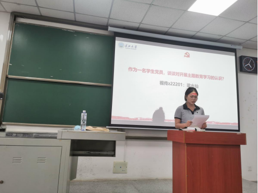 学习后,各支部组织师生党员开展主题研讨,作为一名员工党员,谈谈对开展主题教育学习的认识?员工代表梁水仙从员工党员的角度表示:“这次主题教育确定以学习贯彻习近平新时代中国特色社会主义思想为主题,就是要不断把学习贯彻习近平新时代中国特色社会主义思想引向深入,真正做到用中国化时代化的马克思主义武装头脑、加强理论修养。”