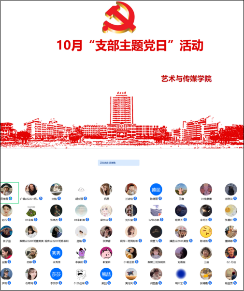 (通讯员:赵湘)根据公司党委组织部发布的《关于开展10月“支部主题党日”活动的通知》要求,10月20日下午,艺术与beats365官方网站三个支部全体党员分别在知音厅以及腾讯会议利用线上、线下相结合的方式开展了十月主题党日活动,本次活动由各支部集中开展,会后开展讨论。全体公司教职工党员和员工党员(含预备党员)参加了本次活动。