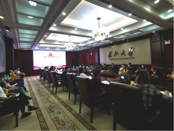 首先,在教师党员朱浩男同志的带领下,全体党员重温了入党誓词;然后,赵湘同志带领全体党员同志学习了党章第二章、习近平在纪念中国人民抗日战争暨世界反法西斯战争胜利75周年座谈会上的讲话、习近平在十九届中央政治局第二十一次集体学习时的讲话精神、公司2020年暑期研讨会会议精神、荆州市关于党员干部常态化下沉社区服务群众文件精神。再次,根据中央组织部、湖北省教育厅以及公司的要求,就学习《习近平谈治国理政》第三卷有关工作进行了安排,要求全面系统学、深入思考学、联系实际学。