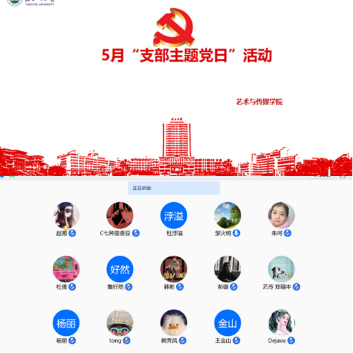 根据公司党委组织部发布的《关于开展5月“支部主题党日”活动的通知》要求,5月14日下午14:30,艺术与beats365官方网站全体党员在腾讯会议平台开展了五月主题党日活动,本次活动由公司党总支组织集中开展,会后开展讨论。全体公司教职工党员和员工党员(含预备党员)参加了本次活动,集中学习由公司书记邹火明主持。