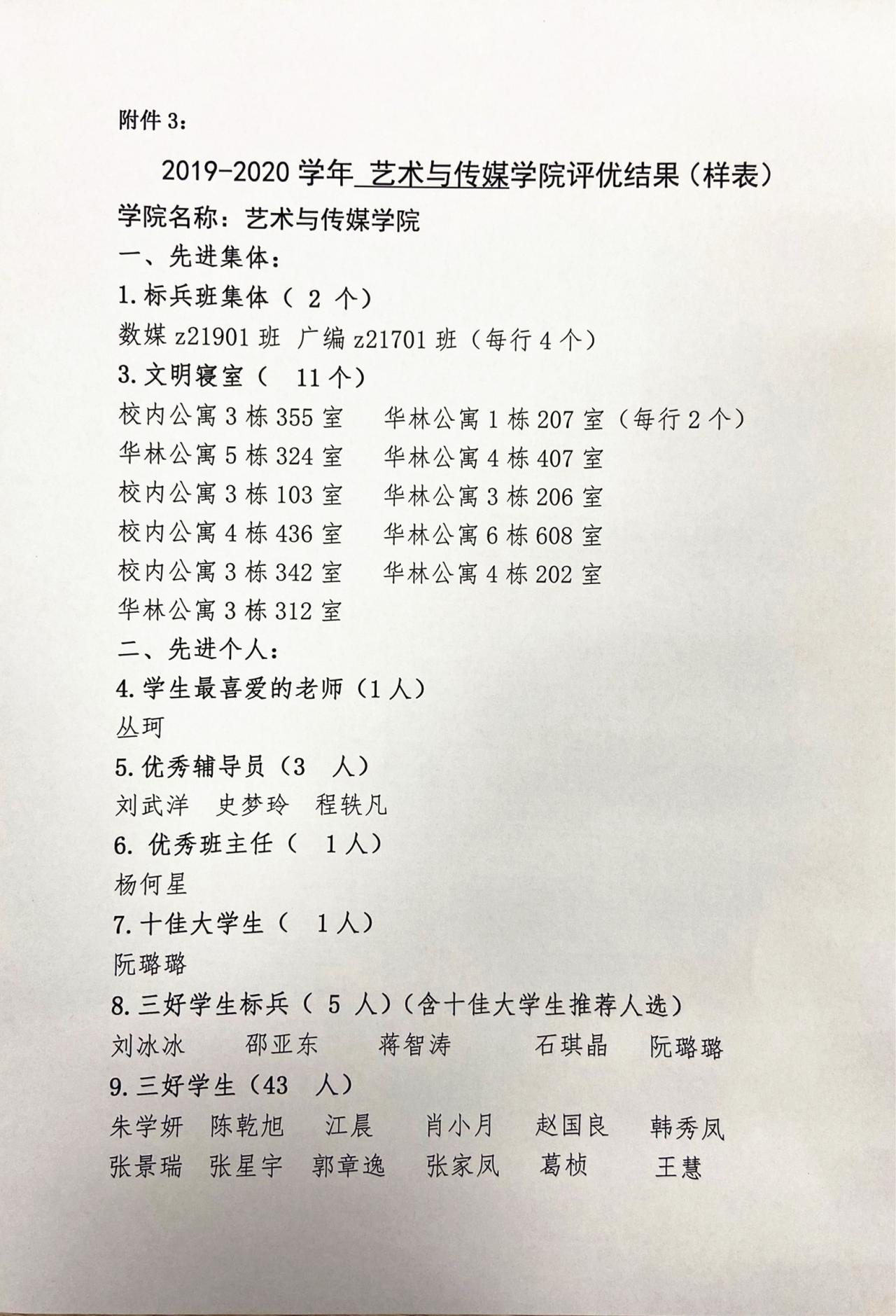 2019—2020学年艺术与beats365官方网站评优结果公示