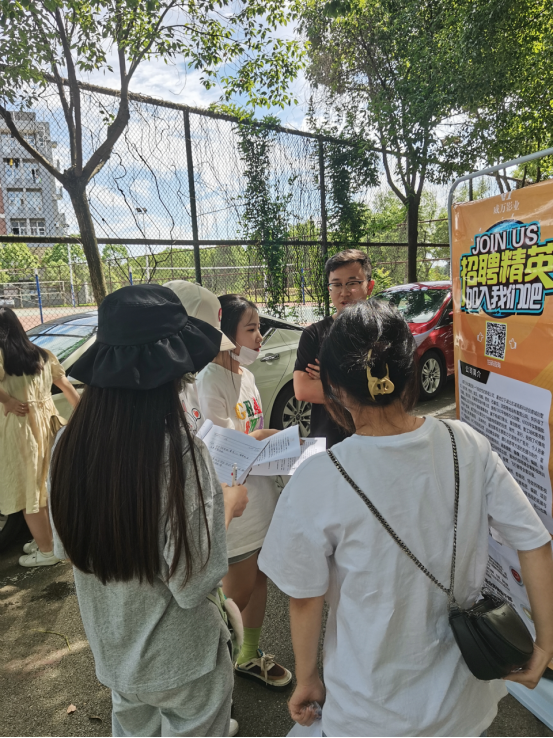 本次招聘会的一大亮点是我们在毕业生体检现场也同步进行招聘宣讲,把招聘宣传放到了毕业生最集中的地方。首先由威万文化集团总监彭芸向在场同学放映视频宣传片,展示了公司自建立以来,目前所拥有的资质,所获奖项,以及之前承建的各个项目等企业历史一一向同学们做了介绍。