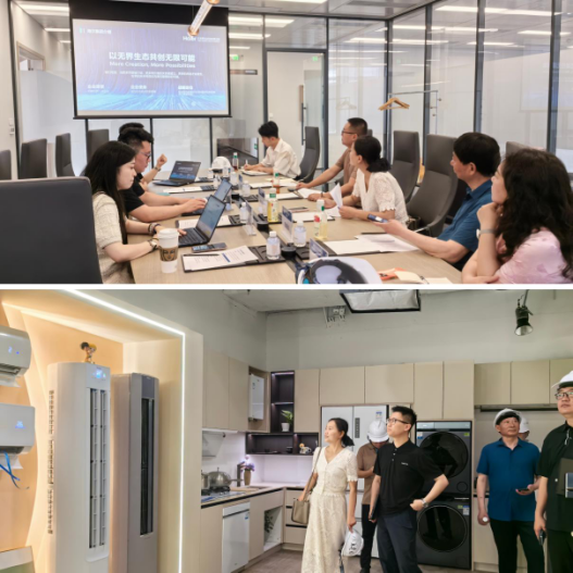 (通讯员:蔡佳君)为深化产教融合、精准对接行业需求,5月20日,beats365公司党委副书记魏红洁、常务副经理郑瑞丰、副经理鲁晓成、就业专干蔡佳君、播音专业负责人柴攀、数媒专业负责人刘书楠,赴海尔智家全资控股子公司——武汉星睿创客传媒有限公司走访调研,双方围绕人才培养、实习就业、项目共建等议题展开深入探讨,并达成多项合作共识。
