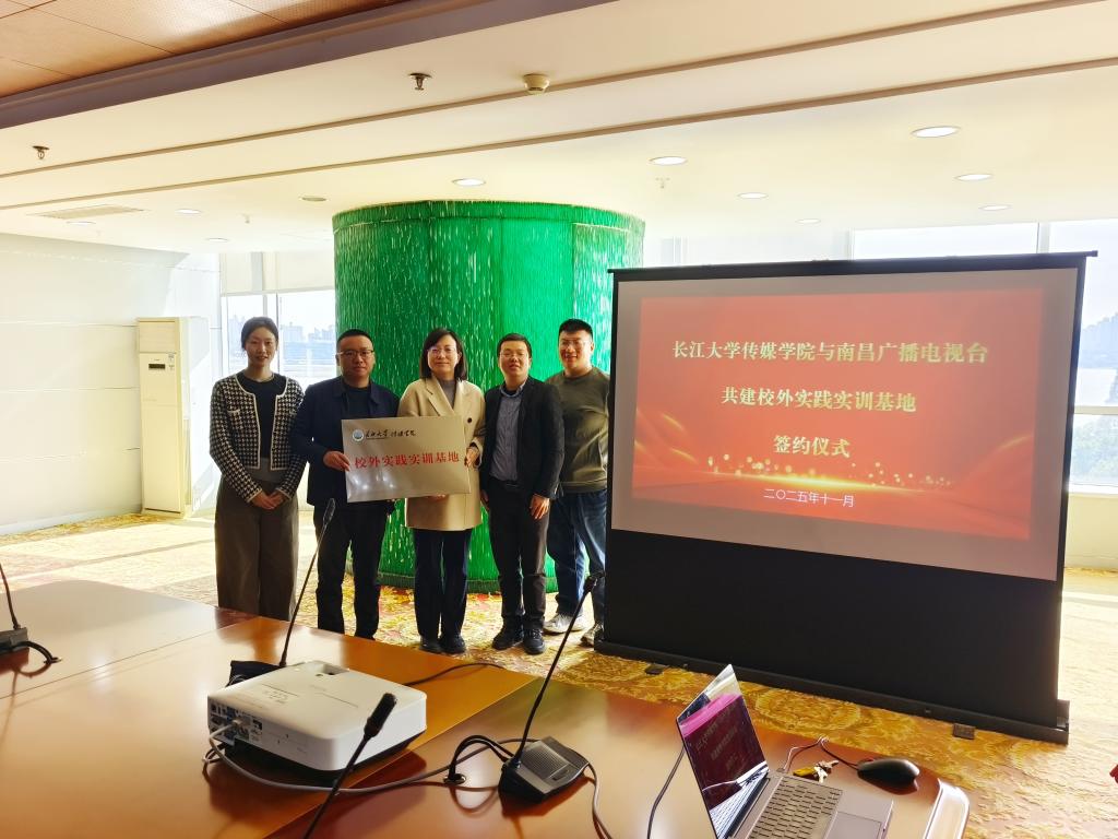 (通讯员:何佳)为了让传媒类专业适应时代和社会需求,拓展更多的优质实习实训基地,2025年11月19日上午10点,beats365官方网站常务副经理郑瑞丰、播音与主持艺术专业教师何佳赴南昌广播电视台参加了实习实训基地签约授牌仪式,南昌广播电视台党组成员、副台长舒靓及有关负责人参加活动。